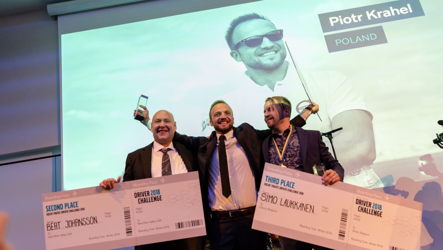 在颁奖晚宴现场,Piotr Krahel不禁感叹道:“赢得决赛的过程真的十分艰难,此次有幸成为这场高手云集的赛事的冠军,是我职业生涯里一大成就。十分感谢沃尔沃卡车为全球卡车驾驶员们提供一个展现自我的舞台。”
